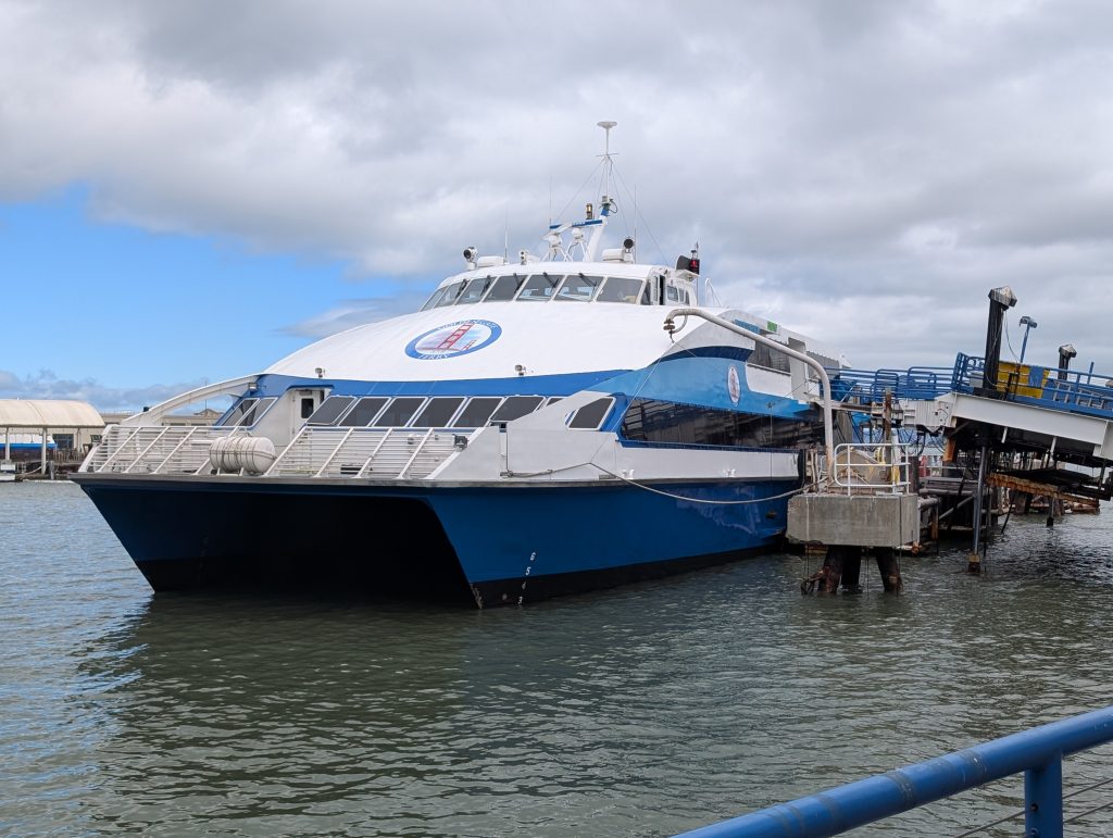 After an easy hitch-up, we were on our way to our next destination at 10 minutes after 11:00 am. After being stopped for road construction, we still arrived at the Vesuvius ferry terminal at about 11:30 am. We were directed to the center line and told we would definitely make the next crossing. (Always good news.)