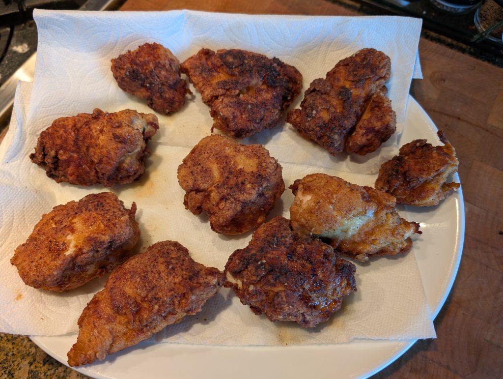 So, this recipe, after numerous “this is OK, but not good enough” tries, is now my “I can do it, I can now make quick and easy fried chicken.” (Maybe even better than my grandmas!)