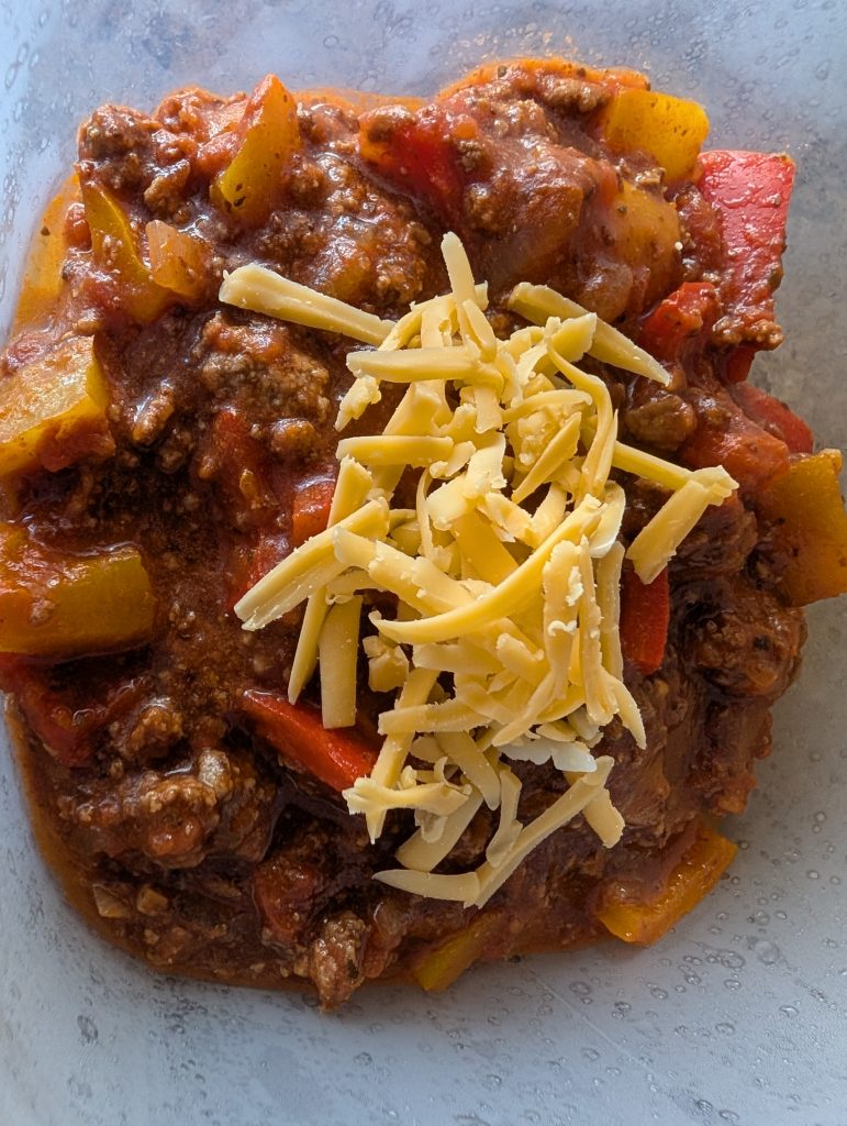 But what I didn’t find in any of the recipes I perused was cheese. How can you possibly make a perfect stuffed bell pepper without lots of cheese? Inconceivable!