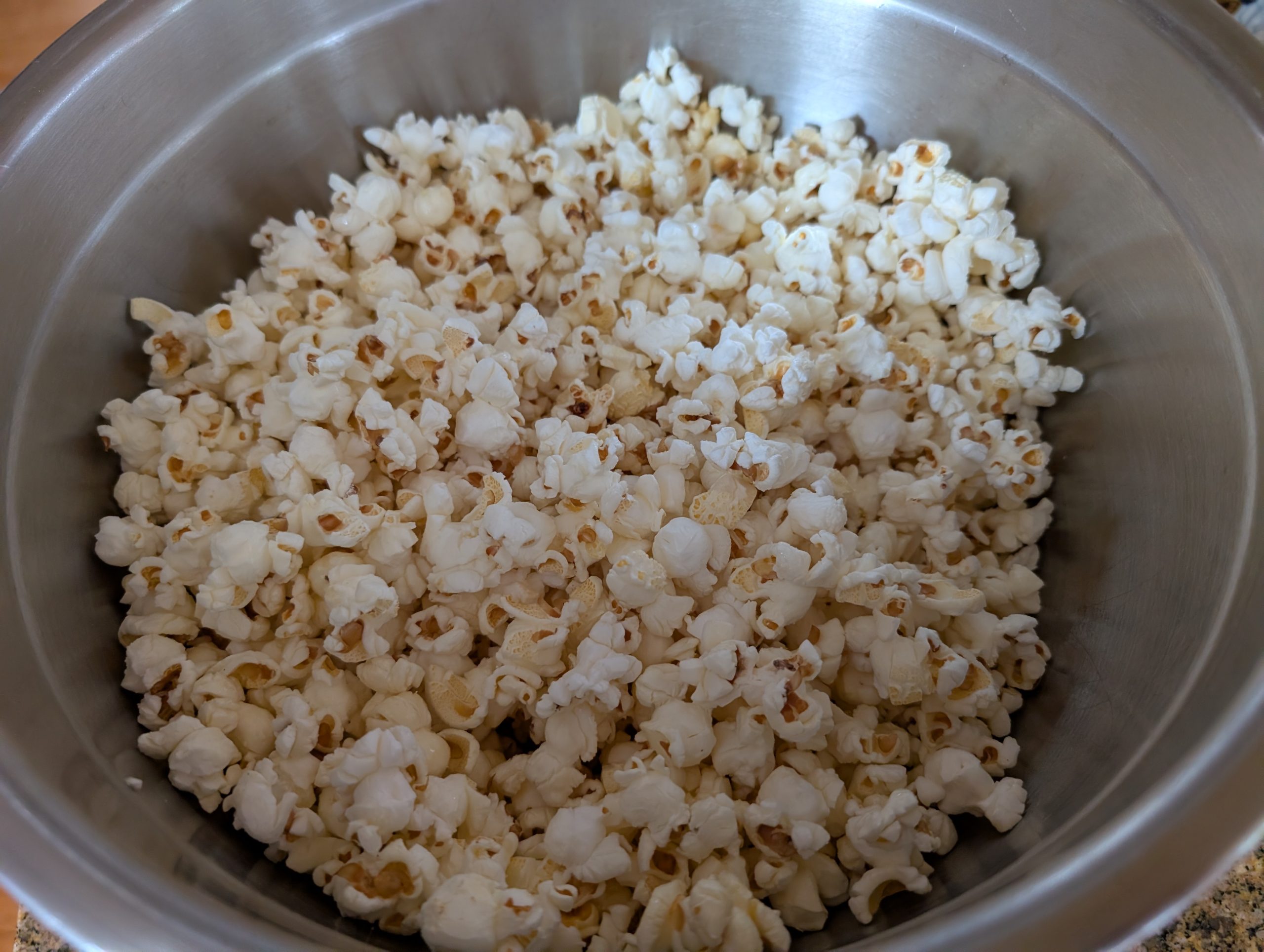 Well, this is my second post for the day. Mr. C. just left for a gig at a retirement home, I have leftover Stuffed Bell Pepper Soup (recipe soon to be published) and cornbread to serve for dinner when he gets home, and I just finished making this delicious kettle corn.